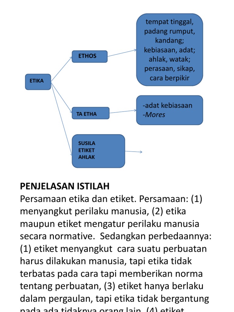 Secara etimologi pancasila berasal dari bahasa sansekerta, yang terdiri dari dua suku kata panca berarti lima dan sila berarti 2. Istilah atau pengertian etika secara etimologi dan terminologi. Pengertian filsafat secara terminologi sangat beragam. Para filsuf merumuskan pengertian filsafat sesuai dengan kecenderungan pemikiran. Segala ucapan nabi saw.,segala perbuatan serta keadaan atau perilaku beliau.
